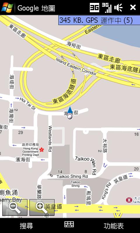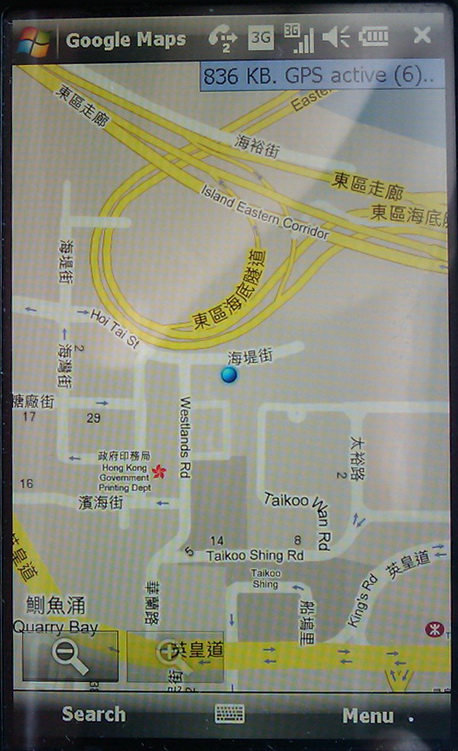 今次受測的 4 部手機,均備有 GPS 全球衛星定位功能,而且亦支援 aGPS 服務,可見 GPS 在高階智能手機中已十分普及。所以在最後一個回合的測試中,UnwireLife 記者便就 4 部手機的 GPS 功能,配合內建的《Google Map》進行定位測試,為有車一族找出最佳的「定位王」。測試中,記者身處太古坊旁大昌行商業中心對出的匯圃(因此處較空曠,有利定位),並在晴朗的天氣下進行測試。而且 3 部 WM 機款在測試前,均已預先使用 GPS 加速器下載衛星位置圖,以加快定位速度。至於 iPhone 3G 由於未有預設內建此軟件,故未有進行此動作。