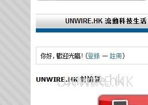 1.首先按網頁左上角的「討論專區」進入 unwire.hk 討論區,手機用戶可以使用 http://check.unwire.hk/forum/ 進入