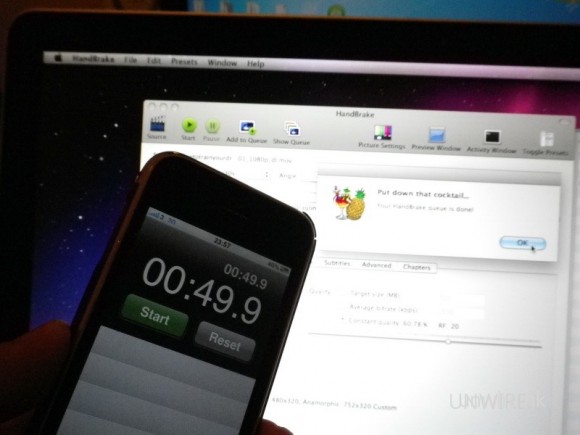 另一測試是將一段 1080p 分多鐘的預告片,使用 Handbrake 來轉換成 iPhone 格式,再計時得知效能分別。