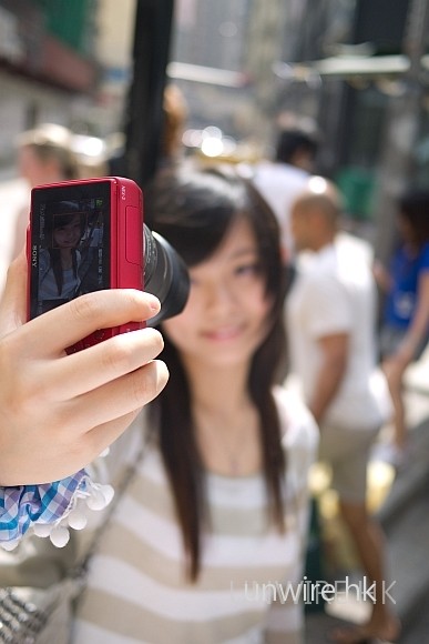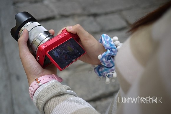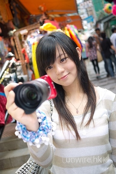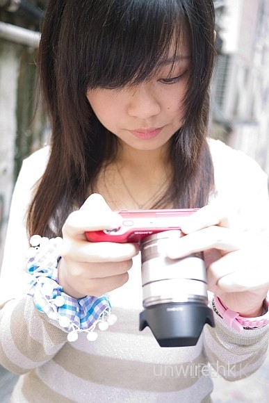 編按 : 其實 NEX3 上的 18-35 鏡頭相對於 Panasonic 14-45 沒有大多少,只是因為 NEX 3 的機身實在太小,阿珊才出現這個錯覺。不過在重心方面,NEX3 機身太輕,18- 35 鏡頭比較重,在總重量上雖然不高,但因為重心向前,握在手時有點「撬手」的感覺,有丁點不適。是次請阿珊試機是希望用一個新手的角度去看這台相機,畢竟 NEX 的對象是以 DC 用家為主。