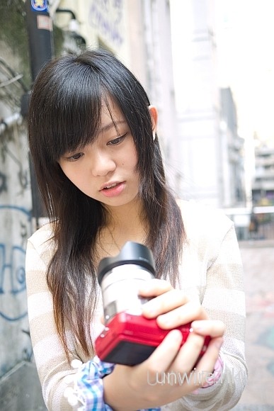 編按 : 其實 NEX3 上的 18-35 鏡頭相對於 Panasonic 14-45 沒有大多少,只是因為 NEX 3 的機身實在太小,阿珊才出現這個錯覺。不過在重心方面,NEX3 機身太輕,18- 35 鏡頭比較重,在總重量上雖然不高,但因為重心向前,握在手時有點「撬手」的感覺,有丁點不適。是次請阿珊試機是希望用一個新手的角度去看這台相機,畢竟 NEX 的對象是以 DC 用家為主。