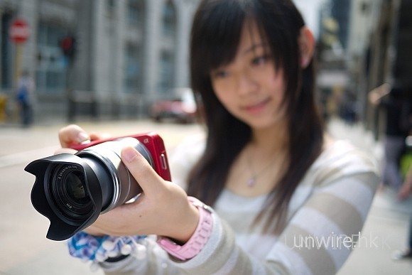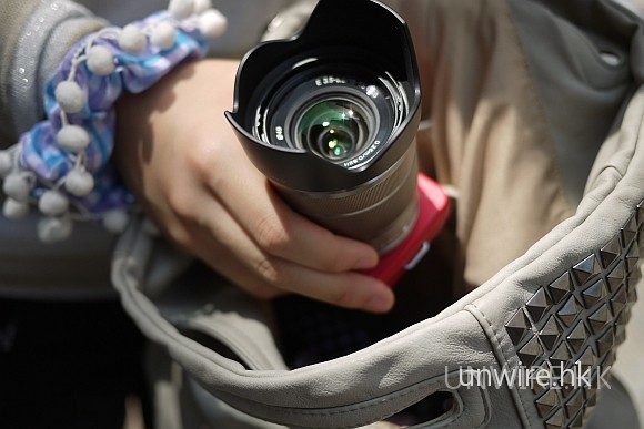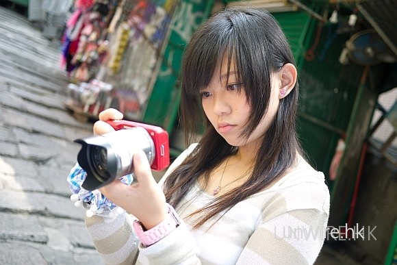 編按 : 其實 NEX3 上的 18-35 鏡頭相對於 Panasonic 14-45 沒有大多少,只是因為 NEX 3 的機身實在太小,阿珊才出現這個錯覺。不過在重心方面,NEX3 機身太輕,18- 35 鏡頭比較重,在總重量上雖然不高,但因為重心向前,握在手時有點「撬手」的感覺,有丁點不適。是次請阿珊試機是希望用一個新手的角度去看這台相機,畢竟 NEX 的對象是以 DC 用家為主。