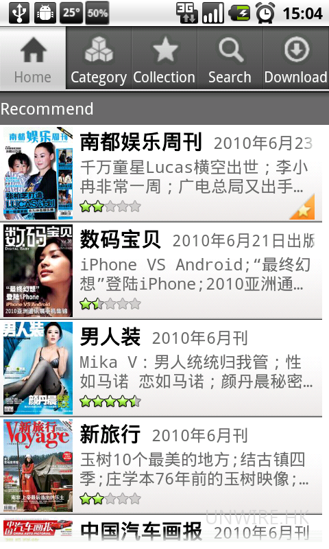 [Android資訊雜誌] 無可否認大陸市場確實比香港大得多,令到一些較專門的雜誌仍有生存空間。今天介紹的《VIVA 電子雜誌》就提供了大量國內雜誌給大家免費閱讀。但始終是免費平台,因此有部份最新雜誌未能及時更新上架,而不熟悉簡體字的朋友都要習慣一下,因為《VIVA 電子雜誌》內所有雜誌只有簡體中文版本。《VIVA 電子雜誌》內的雜誌範圍極廣,較熱門的有時裝、汽車、財經及體育,而相對冷門的如軍事、藝術、家居設計及解夢等,都一應俱全。每本雜誌都支援離線閱讀,大家可先把它下載至 SD Card 之中,然後在「下載」一欄中把它開啓,可省回不少流動數據。對於使用無限數據的朋友,也可為喜歡的雜誌收藏下來,方便日後空閒時再閱讀。