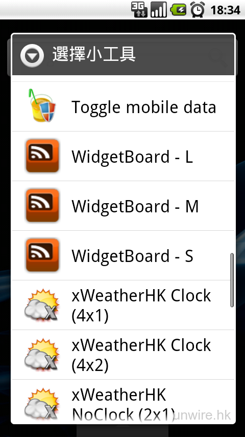 這就是筆者加入的三款不同WidgetBoard畫面,如果你有用開ADW等Launcher,還可以自行改變WidgetBoard的佔用空間,如最大的WidgetBoard可以由4×3變成4×2但看見的效果也十分接近,最緊要是沒有佔用多一行位置。