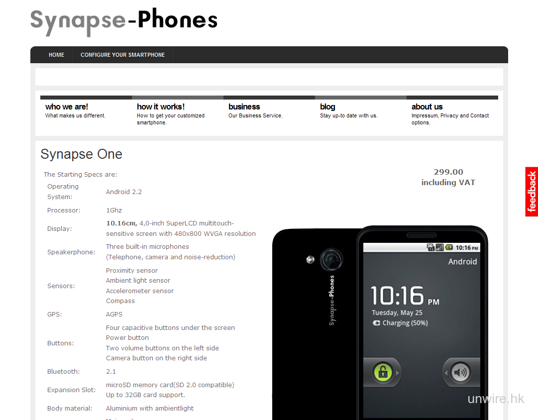 就像到Dell網站買電腦一樣,一個基本的設計再配搭不同硬件模組,功能及價錢由你決定。Synapse One的基本配備是4吋多點觸控屏幕及1GHz處理器,使用了Android 2.2 OS,可以換上3G/4G、不同的WLAN、5MP/8MP/12MP相機鏡頭、256MB/512MB/1GB記憶體、4GB/8GB/16GB/32GB儲存等等,相信總有一個配搭合符你的要求。不過就算你選擇好手機也要到明年第一季中才供貨,如果價錢仍是沒有更新,相信這概念也要變成歷史。大家可以Synapse-Phones網站組裝一下吧。