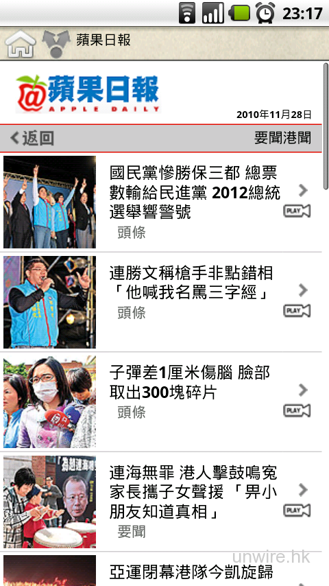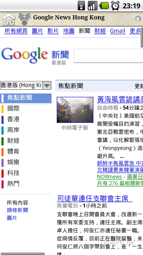 如果你的手機支援Flash,也可以直接播放其影片。再看右邊的Google News Hong Kong,就知道也是直接連結過去。