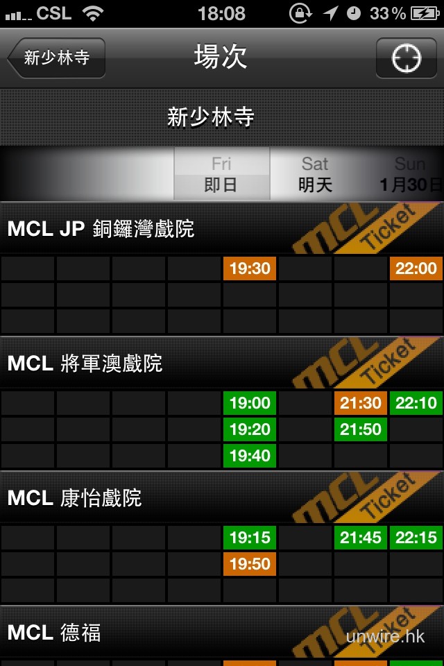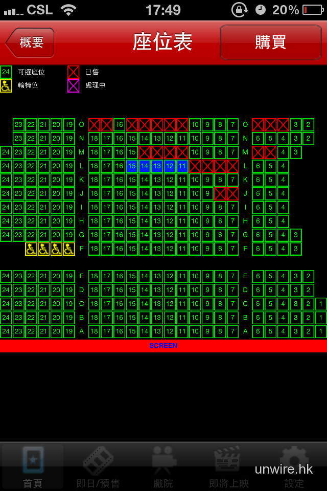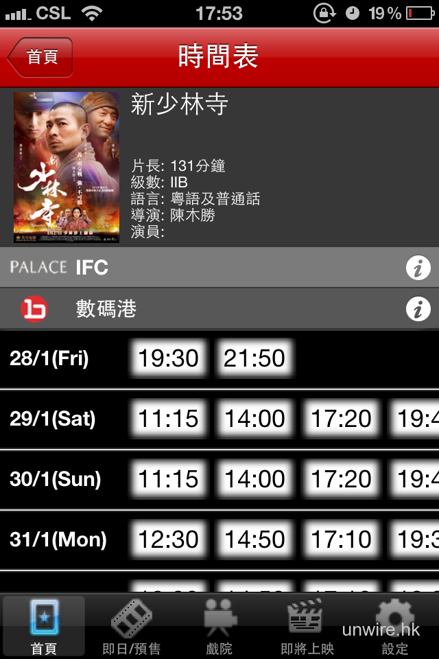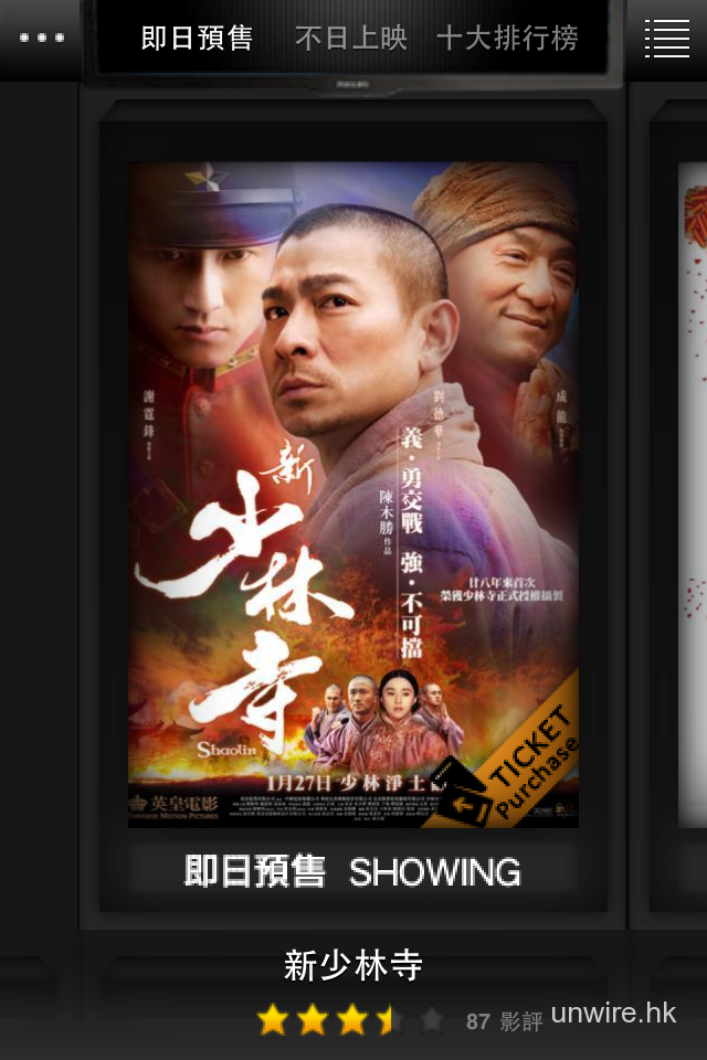 雖然官方 App 跟足蘋果的五欄介面設計,但以戲院 App 的需要來說,筆者覺得 HK Movie 的介面不只亮麗和顏色鮮艷,更能有效運用螢幕空間,操作上更順暢。