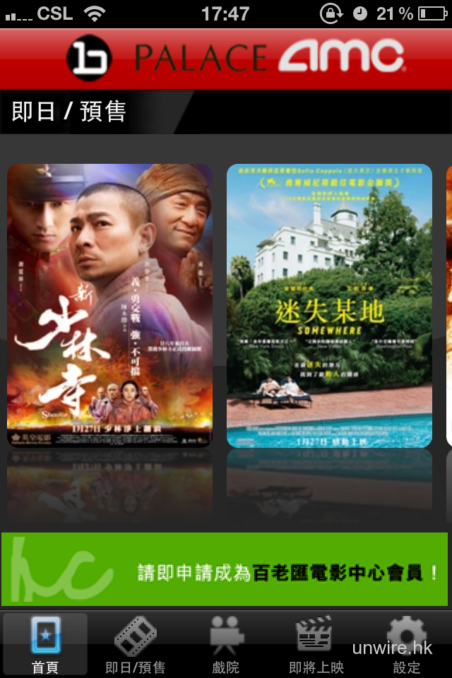 軟件下載:在App Store內搜尋「Ticketing Broadway Palace AMC」,或到 iTunes App Store