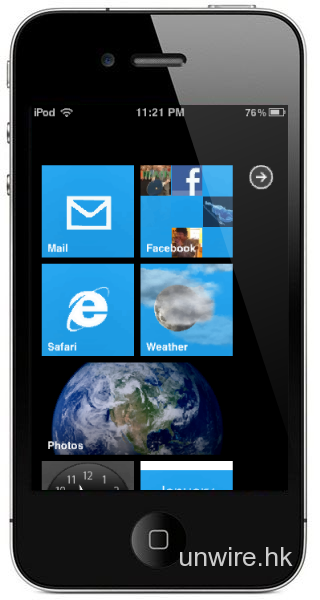 這不是另一部 WP7 手機,亦不是有人將 WP7 系統移植到 iOS device 上。其實這是由 Wyndwarrior 製作的仿 WP7 主題,名為 “OS7″,讓 iOS 用家也能享受 WP7 介面的好處。