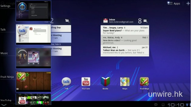 Honeycomb 的介面與我們在 Android 手機上看到的很不同,雖然早前在 Motorola Xoom 的報導已看過部份操作,但今次的正式示範還是值得一看。與 iPad (iOS 4.2) 相比,筆者覺得 Honeycomb 的操作會更方便,而且並不複雜。