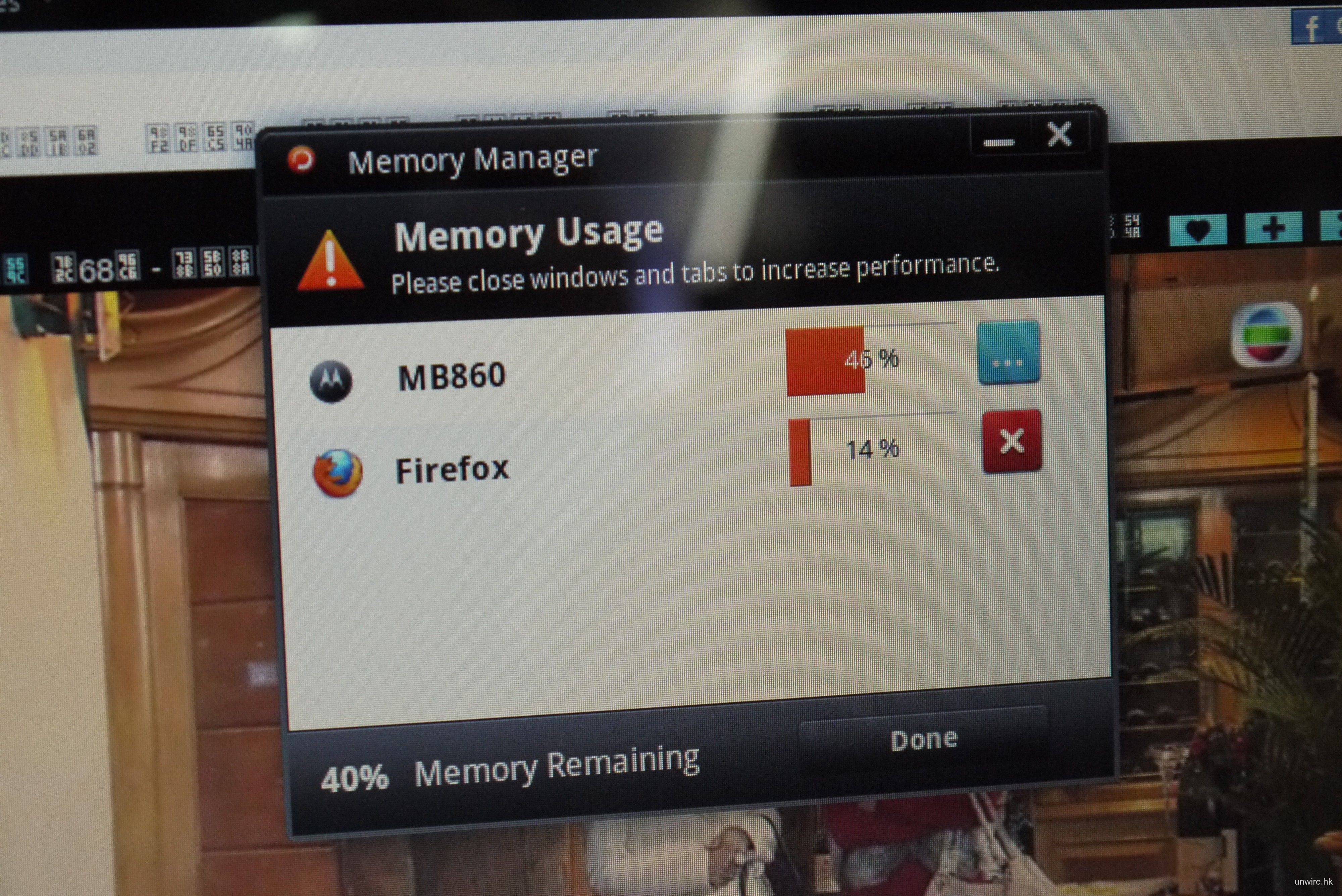 單是手機系統加 Firefox 已用了 60% 記憶體!!!