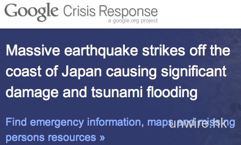 Google 的災難應變系統過去多次都大派用場。在日本地震發生後,Google 的尋人平台亦隨即登陸日本,讓國內外親友查詢失蹤者的下落,或「報告」個別人士的情況,頁面並載有相關資訊如避難所消息及停電消息等。與過往不同的是,該系統同時提供日、英、韓、繁中、簡中等多種語言。現時該平台載有超過 7200 名人士的資料,正陸續增加。希望受災人士能夠脫險,親友們亦快些收到好消息吧。 按此進入尋人系統