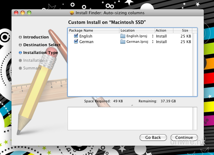 下載 AutoSizingFinder,它是由資深 Mac 友 DanielFo 編寫的 Mac OS X Finder 修正,下載後解壓縮並執行 AutoSizingFinder.pkg 檔。