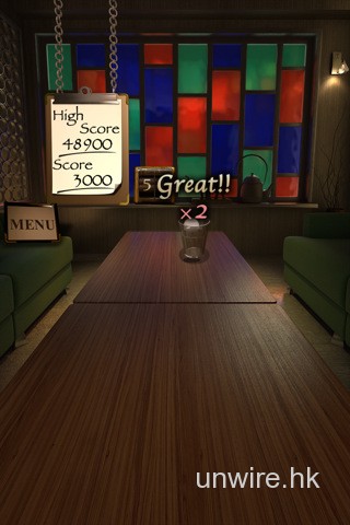 《Glass Pong》玩法非常簡單,玩家用手指點著發球位置,然後把平上的iPhone猛力的上移動,像乒乓球「的的仔」發球般,乒乓球就會打出,向上移動的力度,同樣控制了遊戲中發球的力度,要成功把乒乓球打進那小小的酒杯,其實一點不簡單,自問眼界準的朋友,不妨挑戰一下咯!