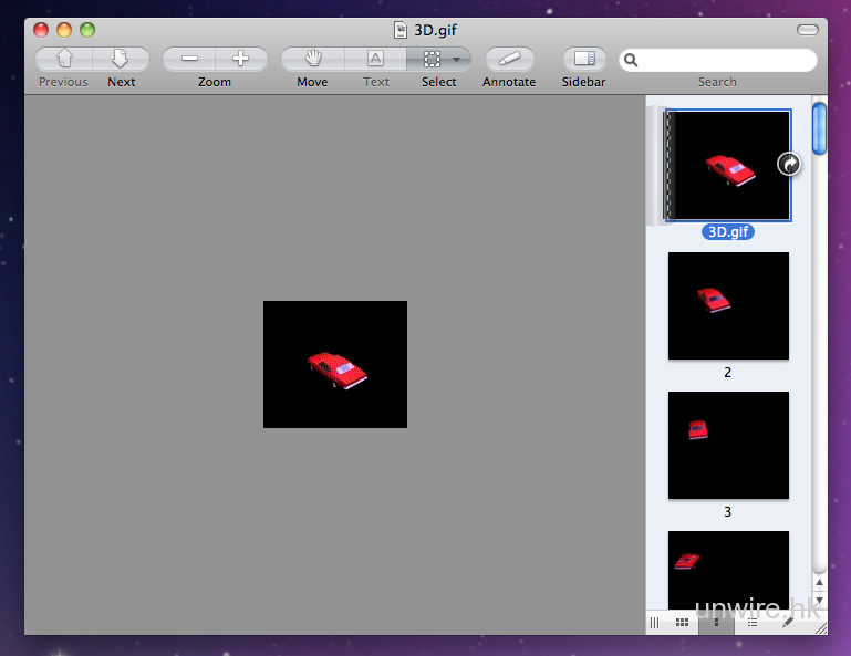 Mac OS 內建的 Preview 軟件並不支援預覽動態 GIF 圖片的功能,只能作逐格「幻燈片」式顯示,用戶往往要使用 Safari 才可瀏覽,十分不便。但原來有軟件商開發了相關的外掛,令 Mac 的 QuickLook 終於可播放 GIF 動畫,Unwire.hk 今次便會為大家介紹。