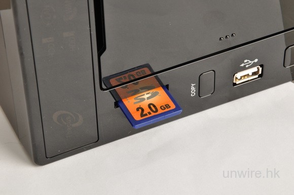 機前除設有 USB 埠外,更設有 SD Card 插槽,並對應一按備份功能。
