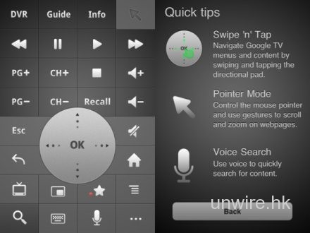 Google TV作為Google野心勃勃的一個計劃,當然不會待薄它。早在去年十二月,就推出了Android版本的遙控器App,直到最近,終於有iOS版本的遙控器App登場。這兩個版本的遙控器,基本上是完全一樣,除了有一個按鍵的位置不同外,在介面和功能上亦無差別。這暫時沒有什麼驚喜,不過相信當第二代Google TV推出之後,將會有更神奇的功能出現才對。無論如何,如果你的電視是GoogleTV,而手上亦有iOS裝置,那這App是一定不能錯過的。