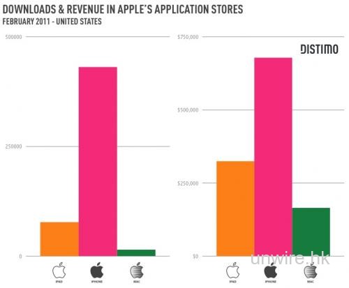 左為軟件數,右為收益(左起iPad,iPhone,Mac)