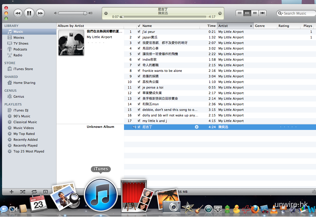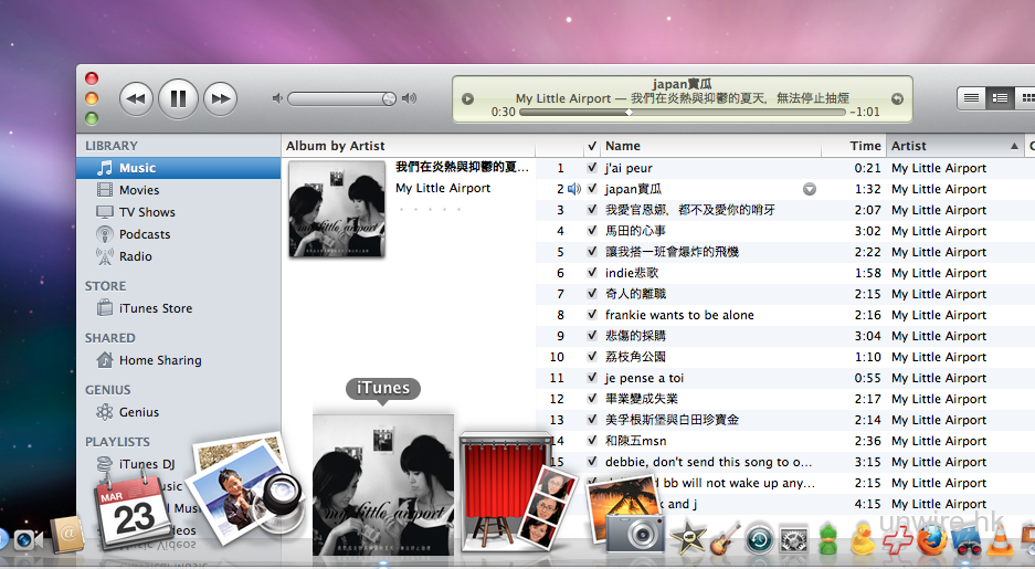 Dock 上的 iTunes 圖示便會變成當時播放中的歌曲的 Album Art。