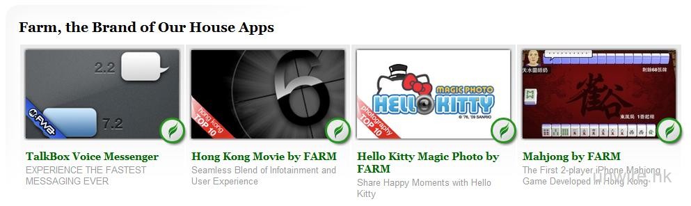 D:這就要由09年說起。當時本地的 iPhone 軟件編程公司不多,新環境新事物下,公司在09年1月成立 Farm 團隊,是抱著嘗試的態度,希望集中研發工作和產品推廣,試試市場反應,也借機會證明我們的能力。那時推出的 Hong Kong Movie(香港電影)頗為成功,讓我們有更大信心去發展全球市場,構思針對環球用戶的軟件。近期的 Talkbox 就是在這樣的環境下誕生。Farm 的軟件暫不會用傳統模式營運賺錢,現時主要目標是擴大用戶群。