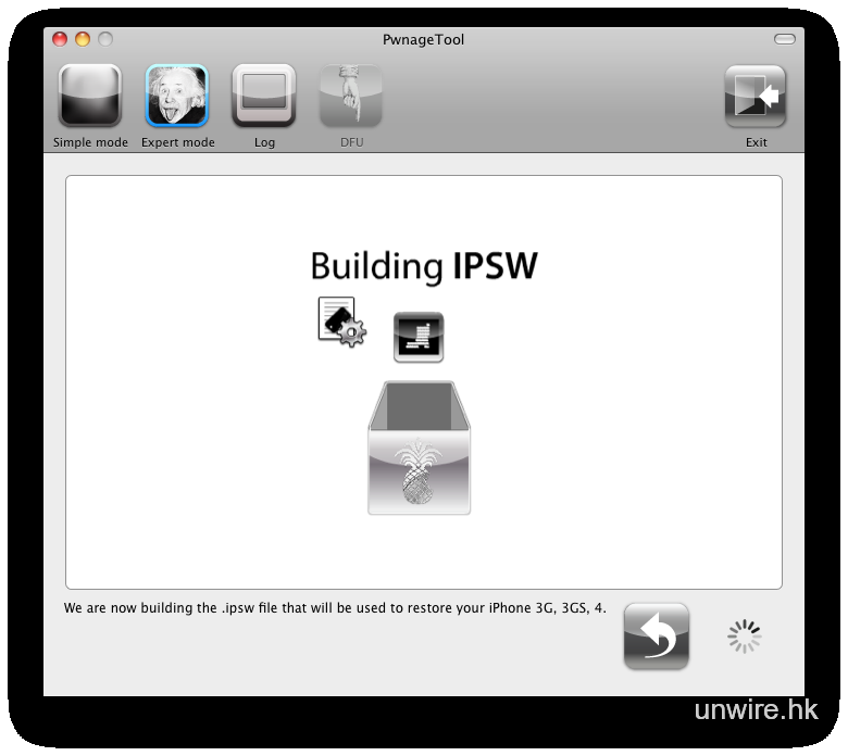 等候約 5 至 6 分鐘,待 PwnageTool 完成產生新 IPSW 的工作。