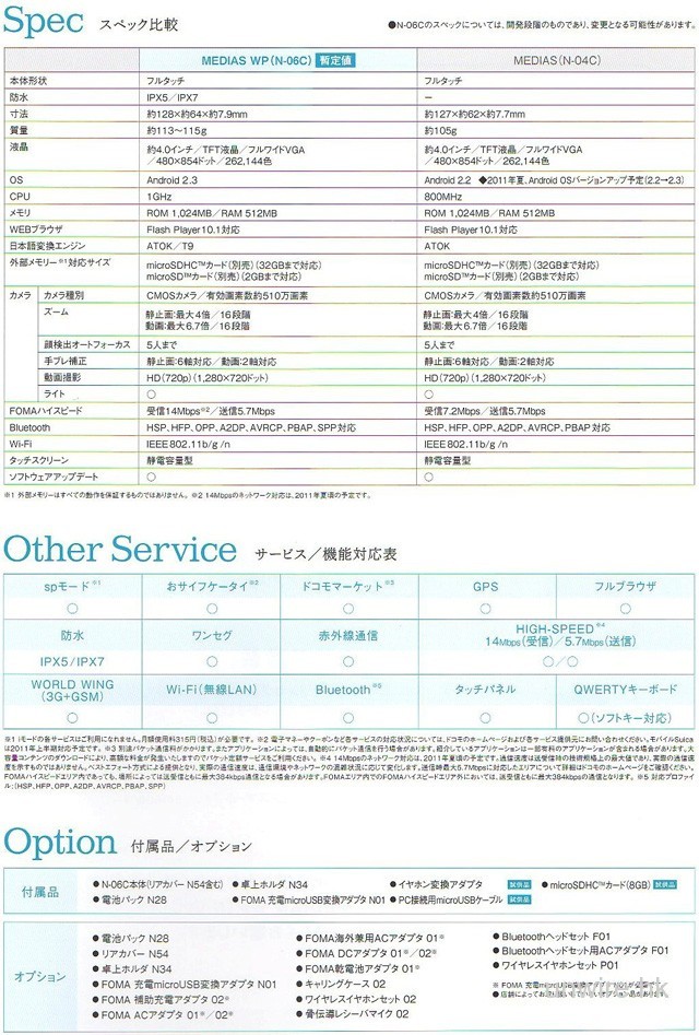 這N-06C,擁有IPX5和IPX7防水規格,並把處理器提升至1GHz,同時轉用Android 2.3 Gingerbread(雖然N-04C稍後也會獲得更新),配合新的14Mbps FOMA下載速度,實用度已是提升不少。其他方面的功能則沒有變化,但擁有同樣輕巧有型的機身,相信已能吸引不少人了。當然,不是居住在日本的我們,要買日系機的話也只好想想辦法。相信此機必會令不少女生心動!尤其是粉紅色機身,請留意我們 unwire.hk 的「少女科技」,此機到港我們會第一時間為各位進行測試