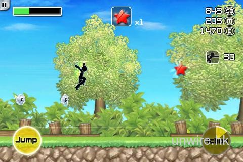 火柴人又出動了!除了《Angry Bird》之外,相信火柴大哥是iPhone上見光最多的Figure之一吧。這次他不用再狙擊,不用再當武士,他終於可以做回自己,自顧自的在iPhone上狂跑。遊戲玩法非常簡單,就只有兩個按扭:「Jump」和「Action」。最值得一讚的是這兩個動作能配搭出千變萬化的跳躍技,絕對不負「Stylish」一字!筆者敢說,《Stylish Sprint》是火柴系列中流暢度最高的一款。他的「跳衝」、「跳上跳」、「轉飛」等動作一氣呵成,令人目不暇給,每個「Jump」和「Action」的組合都充滿著新鮮感!