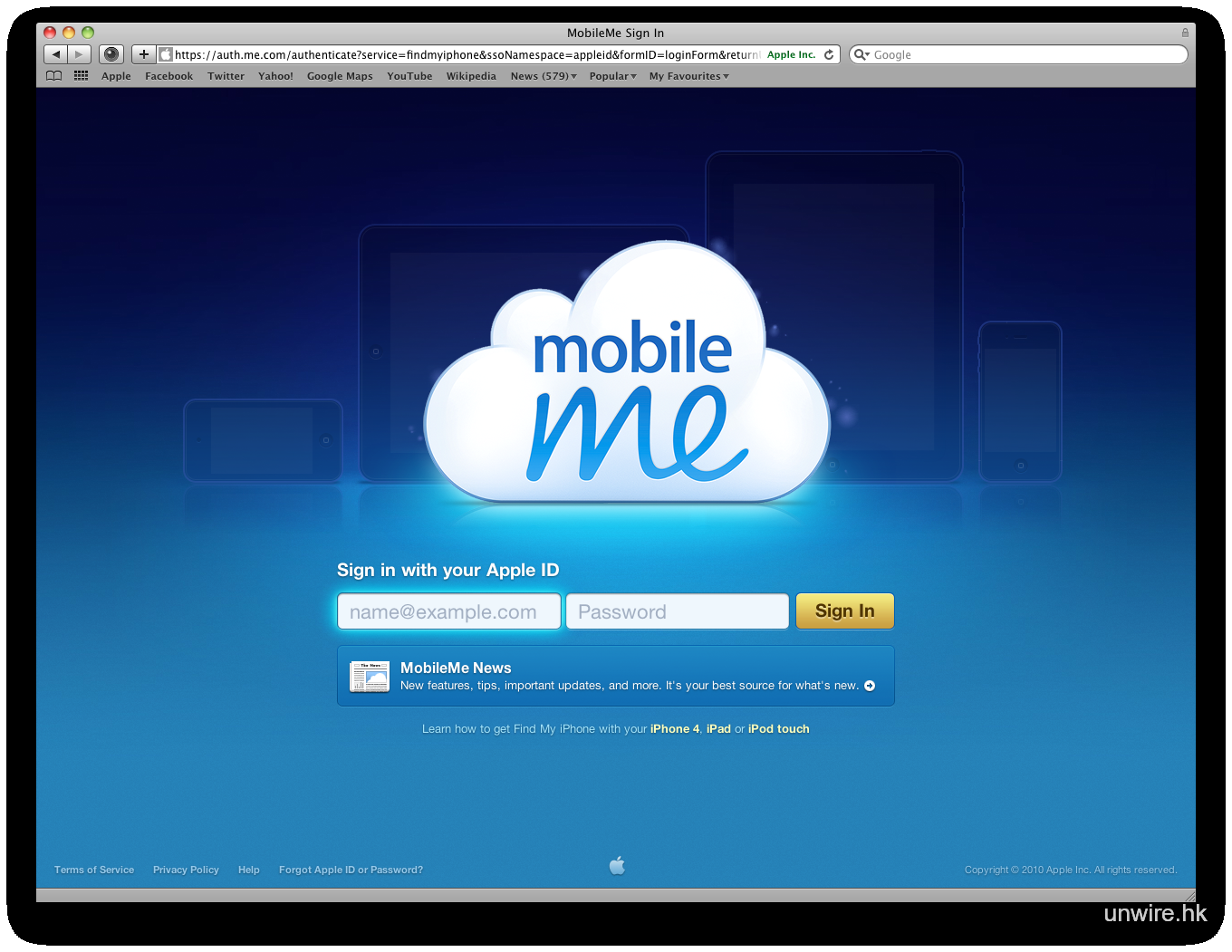沒有 iDevices 又是否不能進行追蹤呢?非也。在瀏覽器中登入 http://me.com,輸入 Apple ID 後亦可用到相同功能。