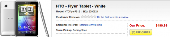 HTC Flyer將在本周四在港舉行發佈會,美國Best Buy已開始接受預訂Wifi 白色版,售價是USD$499 (約港幣$3800),與Acer Iconia Tab及iPad 2 16GB WiFi 價錢相約,預計抵達日期是 5月22日和27,似乎HTC將在五月尾正式發售HTC Flyer。如各位讀者對HTC Flyer有興趣,請密切留意本網的最新消息。