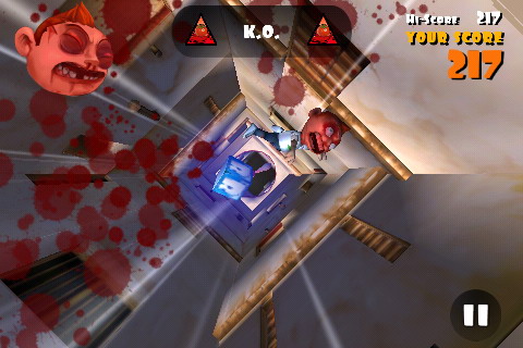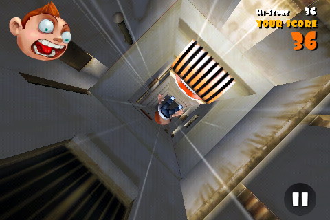 唔知各位有無試過Free Fall的感受呢?如果試過笨豬跳的人相信就會明白當中又Free又驚的心情,筆者有幸試過,而且一試難忘,那種過癮法並不是筆墨可以形容!但如果你像阿Fred這樣Fall的話,可再一點兒都不Free了。《Falling Fred》是一款Falling式的遊戲,在像電梯糟的地方,Fred會一直往下跌,玩家需要移動你的iPhone來控制Fred跌的方向,從而避開各種障礙物。筆者試玩過後,發現完全避開根本是不可能,斷手斷腳已經是最理想的結果,各位最緊要保護著自己的頭部,否則就會一命嗚呼!噢,忘了告訴大家,該遊戲血腥到不得了,要是各位未夠18歲,記得要有家長陪同才好玩啊!