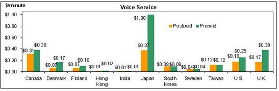 ▲以上是美國OTI在11月發表的流動話音服務收費統計圖