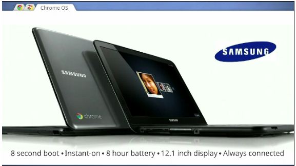 Google 剛剛在I/O 發表,Samsung及Acer 將為Google推出Chromebook。Chromebook 是一部運行Chrome OS的手提筆記本,作業系統的設計非常簡潔,與Chrome瀏覽器的界面相似,Chrome OS與其他手提筆記本不同之處是所有程式都在網上運行,無需安裝任何程式,也無需安裝任何防毒軟件,詳情可觀看以下的簡介影片。Samsung Chromebook 規格方面,採用Intel Atom 雙核心處理器,12.1吋1280 x 800顯示屏幕,重量是3.26磅,設有8.5小時備用電池,上市時分為兩款wifi 版本及wifi + 3G 版本,售價分別是美元$429 及 $499(約港元$3350及$3900)。