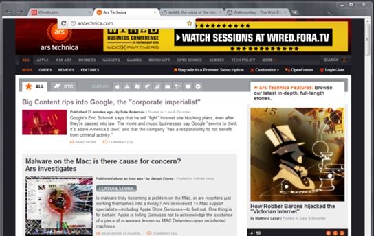 其實,這種設計 Google早在今年年初就曾透露過 ,這種簡約界面可以節省更多空間供用戶瀏覽內容,對於大螢幕用戶來說,你可以選擇切換回傳統模式。 暫時 Chrome 13 只支援Windows平台,Mac OS X用戶暫時無法使用。