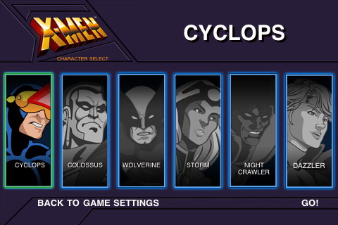 玩家可以選擇Cyclops、Wolverine、Storm、Colossus、Nightcrawler和Dazzler,合共6位角色,和Magneto生死決戰。
