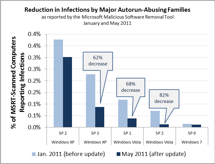 在五月的一個調查中,Microsoft發現,Windows XP(SP3)的用家,在安裝該更新後,少了62%的用家受到該類型病毒感染,而Windows Vista(SP1、SP2)的用家,更分別有68%和82%的改善,可見這個更新十分收效。如果未安裝這更新的朋友,就快去Windows Update看看囉。