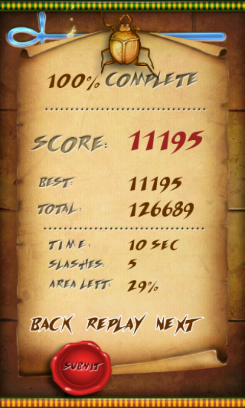 說到以「切」為主題的遊戲,大家可能會想到「切水果」,《Slash》也是以「切」為主要玩法,不同的是玩家要在最短時間將板塊切細,並要避開不要切到在板塊中移動的昆蟲氣泡,直到填滿上面的指標棒才算過關。如果可以一刀切除超過指定比例的板塊,就會有減慢、減少或保護昆蟲氣泡的輔助道具出現。