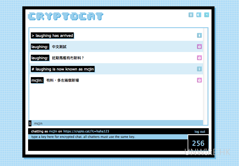 如果我們要進行機密對話,而又要做到完全不留痕跡,單靠電腦程式其實未必可以做到。在此時,就可以使用如: CrytoCat 一類網上 Chat Room 服務了,只要輸入自己的Chat room 名稱,再設定一個密碼,只要對方都擁有相同的密碼就可以進入同一 Chat room。所有對話會以 256bit AES 加密,當閒置 30 分鐘後就會即時刪除內容。適合用於特別的商業對話甚至是線人的特別對話方法呢。 https://crypto.cat/