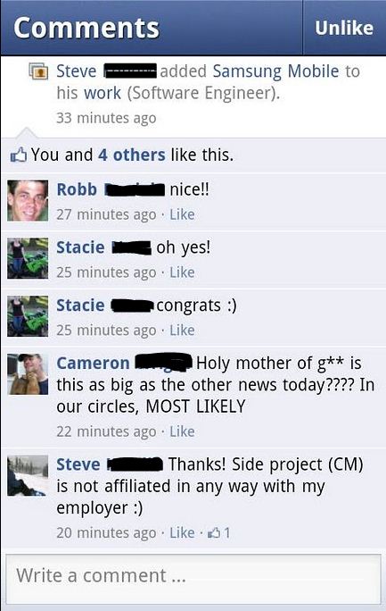 如果喜愛為手機安裝第三方開發系統的用戶,一定有聽過「Cyanogen Mod」,他們的佳作除了受網上社群的愛戴。早前,Samsung 更送出 Galaxy S2 讓團隊開發更多好 ROM。原來當時該部手機只是「見面禮」,剛剛該團隊之帶頭人 Steve Kondik,就正式以軟件工程師的身份加入了 Samsung,相信日後 Samsung 手機的系統層面將會進一步加強開發實力。雖然 Steve Kondik 加入了 Samsung ,但他大派定心丸,指出 CyanogenMod 的推出不會受影響。