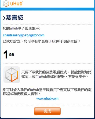 有興趣試玩的朋友,同 dropbox 一類服務一樣,先到網址登記就得了。http://www.uhub.com