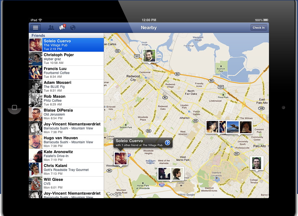 之前 facebook 一度否認存在的 iPad 版本 Facebook 程式,終於今日正式推出。iPad 版的好處是可以在優化 tablet 的介面下,看到朋友的更新,高解像度的相片等。亦可以使用 Nearby 功能,於在大屏幕上看到地圖上附近朋友位置等。