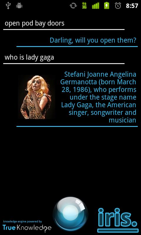Siri的確是個很強大的功能,但說類似的功能,其實Google也有。最近有人就開發出名為iris的Android App,明顯就是衝著Siri而來。它的功能亦很相似,能以日常句子發出指令,包括致電某人、發短訊、搜尋資料和聯絡人,之類。當然完整性沒Siri強,但也算是一個好開始。 來源:AppBrain