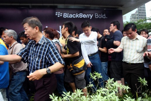 這部最新的BlackBerry手機在雅加達開售,吸引了超過3000人排隊購買,而且當有售罄的消息傳出,隊伍立刻出現混亂,要警察協助控制秩序。今次BlackBerry 9790開售,除了因為BlackBerry在印尼很受歡迎(10%的Blackberry用家是在印尼)外,最先買到手機的1000個顧客,還可以用半價購買手機,這也是吸引到這麼多人排隊的原因之一。如果在香港有類似的優惠,又能否吸引這麼多人呢?