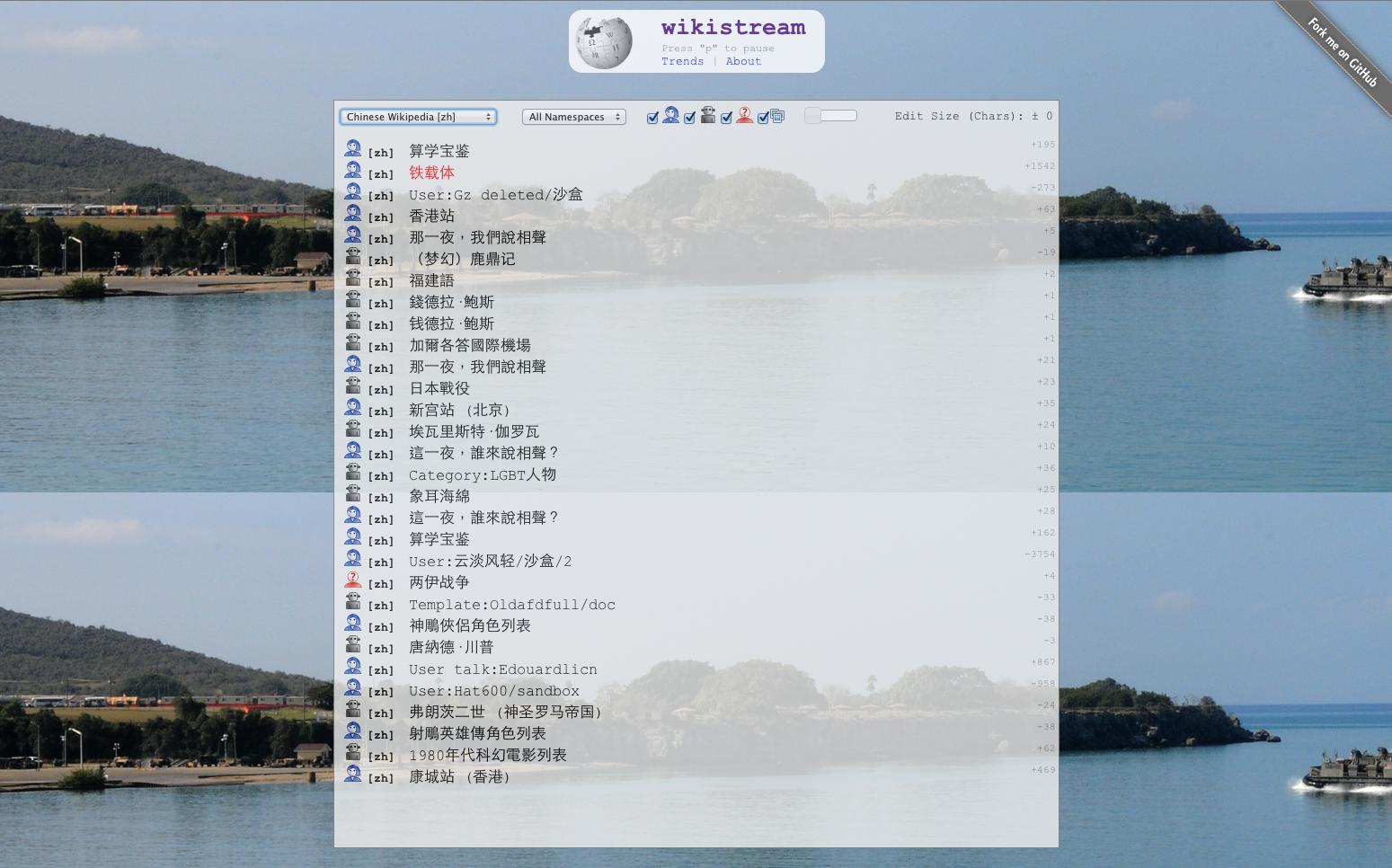 要一探Wikipedia的內部運作,其實也不是太難。有人製作了Wikistream網站,能夠讓用家以實時串流方式,看到在Wikipedia上,每一個新的改動,包括新增、更改或刪除內容。而網頁的背景,則是剛剛有人上載的圖片。進入之後,就會見到世界各地的人們,在不停地更新Wikipedia,令Wikipedia保持其活力。看過之後,可能會有衝動想要參與其中呢。