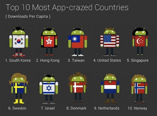 隨著Android Market的下載量突破100億,早前Google公佈了不少相關的數據,而在全球190個國家中,以Android Market Apps每日人均下載數量計,香港排名全球第二,僅次於南韓。