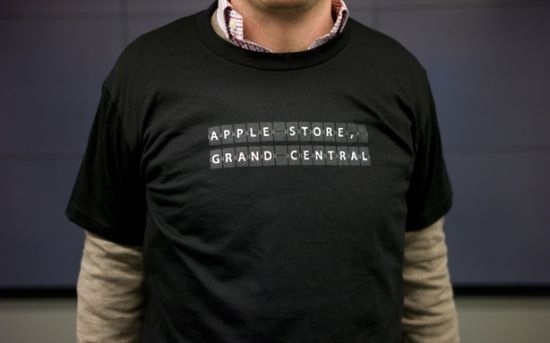 有別於香港的火紅Tee,紐約新店採用全黑色Tee,上面印有仿火車資料顯示板的「APPLE STORE, GRAND CENTRAL」字樣,而包裝就貫徹蘋果的簡潔風格:一個白盒,上面貼有一張粉綠色貼紙。不少粉絲為了儲Tee而來,但亦有部份是炒家,取得限量開業Tee後即在ebay放售。執筆時不少包裝完整的tee連同開業首日的顧客指南,都被炒至過百美元,競投還未結束呢!