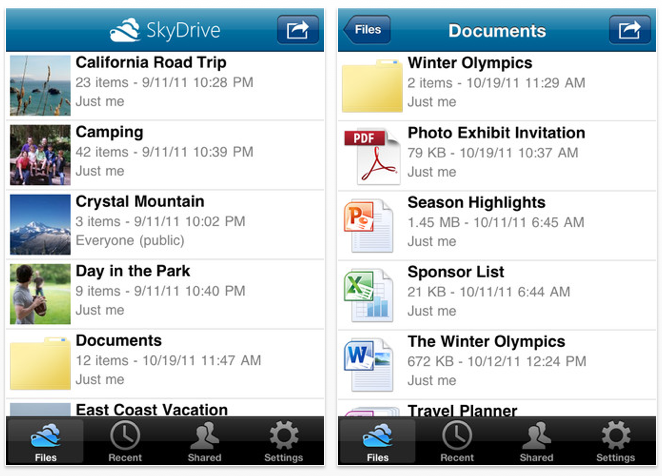 這個手機版的SkyDrive,能夠讓用家使用SkyDrive的大部分功能,例如瀏覽、分享檔案或文件夾連結、刪除或建立檔案,甚至整理檔案等等,功能算是非常齊全,加上能夠擁有免費的25GB容量,實在是一個殺手級的服務,讓Dropbox汗顏。SkyDrive作為Microsoft Live的一員,當然就是用那個Live ID就能登入,十分方便。可惜的是它還未有Android版本,不然就能實現真正的跨平台了。