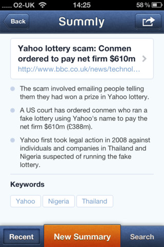 16歲英國少年Nick D’Alosio為做功課上網搜尋資料,但覺得結果太多太亂,於是自學人工智能並寫了一個App 「Trimit」,將網頁內容自動變成摘要。他的故事被福布斯網站發掘和介紹,最後更吸引李嘉誠的私人投資基金Horizons Ventures注資,其改良版App「Summly」近日上架。