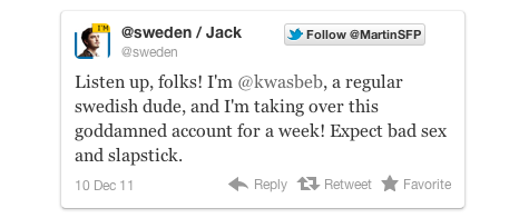 相對於亞洲,歐洲的政府是比較開放,最近又有很誇張的例子出現。瑞典政府的旅遊部,最近發起了一個計劃,讓國民申請,輪流使用政府的官方Twitter帳號,隨意發放自己想說的話。這個計劃反應熱烈,而首批出現的Twitt,也讓人大跌眼鏡。