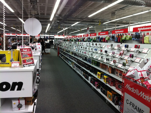 第一次踏足瑞典的電器連鎖店,印象是地方大,貨很多,店員少,等很久。筆者不清楚旺角先達廣場側的百老匯是否全港最大的電器連鎖店,但放在這個地多人少的國家,簡直是蚊同牛比,昨天往拍照的MediaMarkt,由入口行到最深處的電視部,急步走也要5分鐘,若果慢慢逛,細心把玩那些demo手機、相機,或試玩一下新遊戲機,花一個下午絕不為奇。