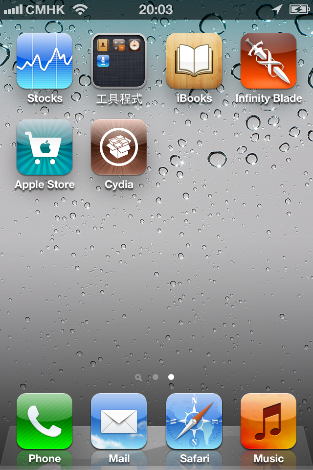 Step4. 在一切完成後,可以發現 Home Screen 已經安裝了 Cydia。